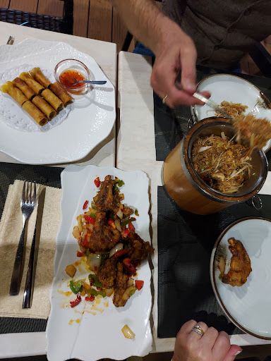 Well like others I read all the reviews before I came here and lucky enough discovered one which said they were all full up when they came so I decided to book a few hours in advance, I'd booked an inside upstairs table and on arrival sure enough got sent up stairs to a round table, upon arriving on the first flight, with my two 70yr old parents, they then sent us up another flight of stairs (yes they have a lift but they never said that at the start) so we walked up the second flight, this is then where a lady had no knowledge of us and they tried making us walk back down saying the area was fully booked but told us we could stay so we did.....we had to then ask the lady twice to take our order for drinks and again for the food, now its started raining and we are all soaking so they close the covers! Anyways the starter of seeweed was β¬5.95 where the Mongolian pork was β¬3.95 which didn't make sense to me especially when the seaweed came greasy with stale prawncrackers....... To top things of when the main came which I can't fault the food the service was bad again with 3 out of 4 receiving their meal while my mum was left with her rice going cold and them starting to serve other tables starters for mins! Food was okay and the other waiters on other floors seemed nice shame ours wasn't.. .. Its also a lovely setting if it...