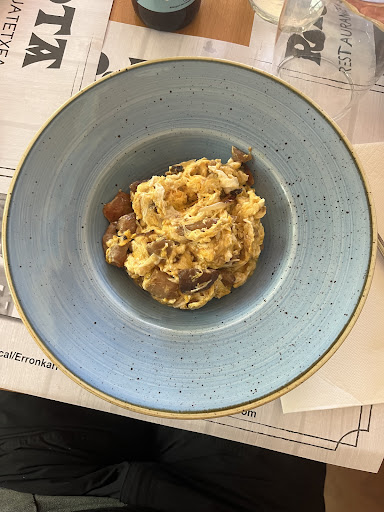 VERGONZOSO. Solo quieren sacar dinero. Super bordes cuando les hemos ayudado a recoger y todo. Te cobran suplemento por todo, y los precios son excesivos. Literalmente te cobran por sentarte. Lamentable, porque no hay mucho más en el pueblo y por desgracia este señoro se ha quedado con todo. Una autentica cagarruta. Los del pueblo NO COMEN AHÍ, SOLO SIRVE PARA TOMAR ALGO Y JUSTO JUSTO. El dueño me ha comentado que debería aprender a leer y moverme más, cuando le he dicho que era un poco excesivo. Pues mira. También me ha dicho que a ver, nos han puesto pan. Ojo, pan. CUANDO EL MENÚ CUESTA 25 EUROS. COLEGA. Nos han cobrado 12 euros por compartir de 6 personas 4 menús porque NO TIENEN UNA OFERTA NI VEGETARIANA NI VEGANA. Está claro que de vuelta a este sitio NUNCA MÁS. Es que qué mal, cuando encima estás en familia. Todo esto a gritos. Bufff. El pueblo no se merece a esa persona, la verdad. Para las 15:00 no quedaba nadie allí, normal. Cuando no tienes competencia al final haces lo que...