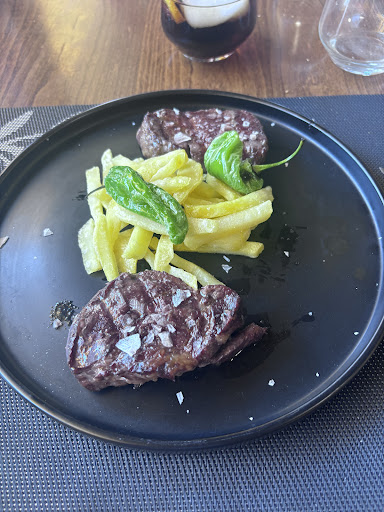 Por último pedimos entrecot al punto menos. Cuando nos llegó el plato se ve claramente que estaba bastante hecho, lo que confirmamos al probarlo, además se notaba que era carne congelada desde hace tiempo al tener una textura chiclosa.