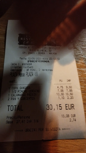 Read moreCuidado!!!! He dado puntuación 5 porque este perfíl es de Bar Restaurante la Bodega! Son excepcionales tanto todo el personal, cómo el servicio y la comida. Tapas de Ronda auténticas y super precios. Me encanta desde años el sitio y todo el ambiante, pero OJO. Cuidado!!!! Estos chavales han traspasado el establecimiento hará unos 3 meses a un tal Daniel Barrado Reyes, según aparece en el ticket de pago y se llaman ahora La Bodega Almocabar. No tienen aún para poder ponerle comentarios etc. porque si lo tuvieran les diría lo que voy a poner a continuación. Primero se valen de nombres parecidos para despistar y maquillar la nueva gerencia. Ponen ahora Bodega Almocabar y antes era Bar Restaurante La Bodega, Ponen ahora Bodega Almocabar, cuando ya en la misma plaza hay otro Restaurante maravilloso por cierto, con nombre Restaurante Almocabar. Le pondría de puntuación general una estrella. En la comida le pondría otra estrella. Tapas regulares de sabor y que nos dejamos en la mesa, y ni nos preguntaron que porque iban de vuelta?? Servicio regular y nada profesional. El señor Daniel, con una camiseta, y en chanclas organizando a camamreros etc. Cero imagen. Los camareros super despistados dejando comidas en meses que no eran, para llevar los vasos en vez de cogerlos profesional, para llevar más en la mano, con los dedos por dentro de los vasos que iban a dejar para usar en nuestra mesa, no para recogerlos. Detalles muy poco profesionales. Evidentemente NO lo recomiendo y se están aprovechando del nombre anterior excepcional para dar estos servivios a posteriori, Cutre...