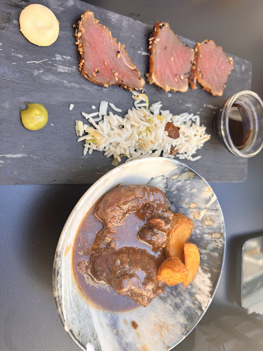 Surely 10 out of 10!!! (Price, taste, hospitality, location) I love all the dishes that I have ordered! There is no waiting time and the whole restaurant just look clean, new and cozy! My favorite dish is the one in videos! Just look how tender the meat is and the taste is just amazing. The hummus with pig stomach is also really nice! I love organ meat and I love how difficult to deal with it because organ meat comes with strong smell. But this one, does not smell anything at all. It just tastes really nice and the meat is very chewy! If you like burger, then you must try the mini burger. The beef is not dry at all, but very tender and juicy! Besides, I don’t like onions and cilantro’s and they also offer the services to customize it according to your own preferences! I could not say anything about tuna tataki because my boyfriend ordered it. He said it is really good! Besides, I really love their sangria. I always order Sangria wherever I go in Spain. They really serve the most refreshing sangria I have ever...