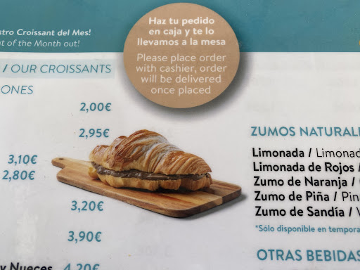 Read moreLa atención del personal hace que nunca quiera volver a este lugar. Pedí unos batidos de los cuales ninguno de los sabores de la carta estaban disponibles (decían que tenían que actualizarlo) y un par de croissants, al momento de entregar la orden, ante la confusión de que se anunciaba el servicio a la mesa y ver que éramos nosotros los que teníamos que ir a recoger, tardamos con exageración un minuto en ir a por ello. Cuando nos damos cuenta que el queso del croissant mixto NO estaba derretido fui a pedir que si por favor podían calentarlo y la respuesta fue: “Ya se enfrió verdad? Como tardan tanto en venir pues se ha enfriado.” Con una prepotencia increíble, que ya vi la mala gana con la que me entregó el pedido pero hice caso omiso, pero este tipo de respuesta es una falta de respeto y humildad a reconocer que nunca lo calentaron. Que tardemos 1 minuto hace que el queso se des-derrita? No lo creo. La respuesta soberbia SOBRA. He leído un par de reseñas señalando comportamientos así y claro, un mal día lo tiene cualquiera, pero la MALA ACTITUD es para rato. Obviamente NO VOLVERÍA NUNCA más y menos aún recomendarlo.