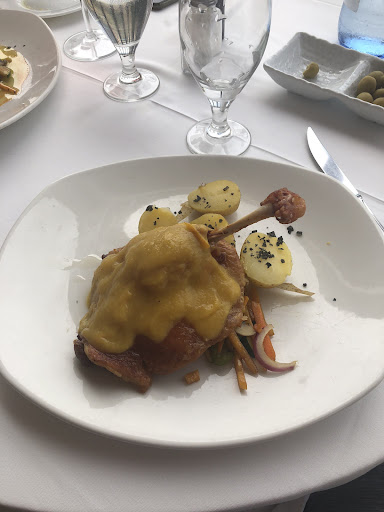 Some of the worst service I have ever recieved in all of my years dining. I'm not sure how anyone can classify this as fine dining. We are saying in the hotel and the receptionist recommended that we make reservations at the restaurant which we did for our anniversary. We arrived on time and stood without being acknowledged for at least 10 minutes. We were then taken to our table where we again sat for 30 minutes before we were even acknowledged Which consisted of the maître d' walking up to us and stating "what do you want?" with his pad of paper out. No, "how are you doing?" no "let me tell you at about therestaurant" no "I'm so glad you're here" , Not even one explanation about any of the dishes. We ordered 2 cold appetizer, 1 hot appetizer and 2 mains as well as drinks. All 3 appetizers came out at once Which meant either something had to sit and get cold or something had to sit and get soggy. By this time our drinks were empty but we were never again asked if we wanted anything else to drink. Wait staff walked in-and-out but it was as if we were purposely being ignored Along with a few other couples that were being treated exactly the same way. There are only 9 tables in total that were seated during our dining experience. Eventually our main courses came out which Had both obviously been sitting for a while before being brought out and we're lukewarm. Still no one asked if we wanted additional wine or any other drinks. After finishing our main course our dirty dishes set on our table for another 30 minutes at which point we flag done the manager and ask for a check. At this point of frustration level was very high so we Walk directly to the front desk to speak with the receptionist. We voiced our concerns over the quality of the meal and of the service that we received. She informed us that there was no manager of the hotel or of the restaurant that we would be able to talk to And that he wouldn't be available to speak to anyone for at least another 4 days. She did eventually call the maître d' on the phone but wouldn't let us talk to him and told us that he said it would be best for us to just pay our bill and then call him when he came into the office and then he would decide if he wanted to do anything to compensate us for our poor service. The receptionist did tell us that the restaurant had been receiving massive amounts of complaints for the poor service. I would never ever recommend this restaurant to anyone. The hotel is gorgeous and the rooms...