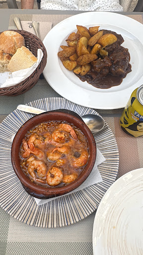 Servicio bastante deficiente, hemos comido cuatro personas, mi mujer y yo hemos pedido primer y segundo plato, mi mujer un gazpacho y berenjenas y yo una ensalada y rabo de toro, mi hija y mi suegra han pedido un escalope de pollo y una plato de paella respectivamente. Pues bien, nosotros nos hemos comido ambos platos y ellas seguían sin recibir el único que han pedido. La comida no estaba mal pero desde luego que 14€ + IVA dos trozos de rabo con seis o siete patatas, o 12€ + IVA una cazuelita de arroz con 4 langostinos.....pongo lo del +IVA porque los precios de la carta no lo incluyen, (que luego viene un 10% de sorpresa) aunque se indica abajo con letras minúsculas. Se añaden 8 bebidas (6 refrescos y 2 cervezas) sin ni siquiera postre y sale la "módica" cantidad de 78'75€ que para lo que hemos comido lo considero más que un palito. Sin duda creo que no repetiremos.