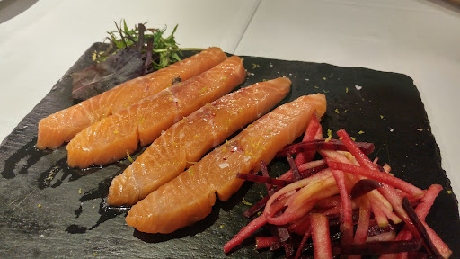 Read moreLoved this place. Outstanding food, would have gotten 5 stars if they hadn't forgotten my appetizer and only served it after all the mains were done. Our mains also took quite a long time to arrive, but other than that, everything was top notch. We ordered the marinated salmon, truffle fried eggs, pork cheeks, duck with basmati rice, and the foie gras with goat cheese (which came much too late). Appetizers were great; salmon was served in nice thick slices, and the eggs were pretty decadent. Good portions for the mains too, duck was grilled very well, and the marinade/sauce was perfect. Foie gras was the bomb. Such a huge portion, and with the goat cheese and melted caramel - amazing. Needs to be shared. Unless you want a heart attack. Service and...