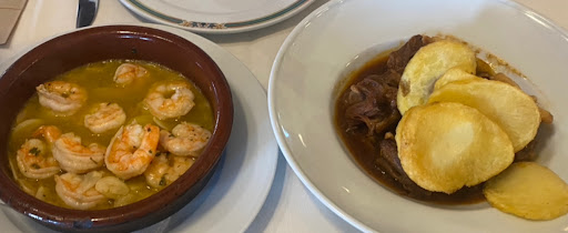And the food was pretty darn good. I had one of the best dishes so far in two weeks travelling around Andalusia - the Carrillada Iberica (pork cheeks) were succulent, tender, in a delicious gravy, served with perfect, homemade thin chips. My partner had Boquerones Rellenos (fried stuffed anchovies) which he was very happy with. The bread rolls were fresh and delicious. The only mediocre bit was our shared main of Spaghetti Bolognese. It was a generous portion but needed about twice as much sauce. The fresh pasta was good but the sauce very pedestrian and under seasoned. Perhaps it’s a mistake to order pasta in a Spanish restaurant but it was included in the recommended selections pages of the menu, as were our other two dishes. Overall though, a very nice meal, a good experience in a...