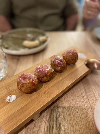Food: 5/5 The chef here is brilliant. We ordered russian salad (with a light touch of truffle that made it stand out amongst others we’ve tried throughout our road trip in andalusia), ham croquettes (topped with another slice of ham, we ate each in a single bite and it melts in your mouth with a rich creaminess), brioche with salmon tartar (delicious, disappeared in our stomachs almost as soon as the plate hit the table), and patatas bravas (with a sauce that tasted almost like peruvian huancaina). Then for the main dish my father ordered ‘chuletón de ternera’ aka a huge slab of meat that he split with my sister and I. For context: I live in LA and have been trying to stop eating as much meat lately because I live surrounded by vegans (the horror), but there was no way I could resist this one and you know what, I don’t regret it!! The steak was cooked to perfection and quite literally cuts like butter. It was filling without leaving you bloated (and something like this would probably cost you triple the amount in the U.S. and wouldn’t be as high quality as you will find in Sensur). For desert we had cheese tart with raspberry ice cream with some frozen berries garnished throughout— to die for.