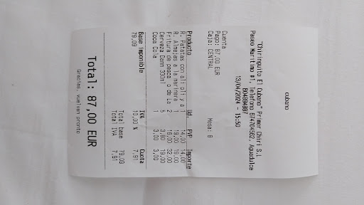 Lovely location and chiringuito. But the food was terrible. The fries were so greasy, the hamburger was just a big piece of meat and a slice of cheese between bread, the platter of 3 types of fishes existed of only… fish. No fries, no vegetables, nothing. The calamar was so greasy, and I’m not a big fan of fishes with bones and o boy there were a lot of them. Overal, the grease was just too much! This could be such a big and beautiful chiringuito! The beer was nice and (ice) cold, the bottled water...