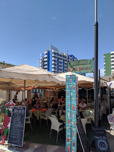 Read moreDe lo malo lo peor... Hoy tuvimos ocasión de vivir en nuestras carnes el sumum del don de aprovecharse de las necesidades del turista. Ya decía yo que si había tantas mesas libres a las 13:30 un domingo en pleno agosto era porque ahí no había nada bueno... Y efectivamente, así fue. Éramos 4: dos adultos y dos niños. Estos querían pizza y pidieron una cada uno, a 9 euros cada una. Los adultos comimos de menú, a 12 euros cada uno. Cuando llegaron las pizzas, vimos que eran las de la marca blanca de Casa Tarradellas y que obviamente, con una habrían comido de sobra dos niños. Podrían haber tenido la decencia de habernos avisado de las cantidades, pero de lo que se trataba era de hacer caja... Y los menús, nada del otro mundo, con guarnición de judías verdes y zanahoria... Además, tuvimos el honor de ver el espectáculo del encargado del local enfadado porque un repartidor de pizzas entregó un pedido a pie de playa al lado del local... No termino de entender cuál era el problema... Estuvimos en la terraza del local luchando contra una plaga de moscas justo enfrente de un cartel en el que ponía en español y en inglés que tenían local climatizado y sin moscas (no flies)... Y cuando llegó la cuenta... 61 eurazos... No hay duda, son unos...