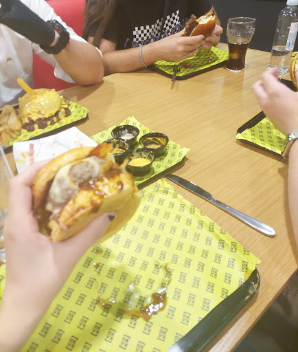 Read moreReservamos para 4 personas un domingo a las 21:30. Llegamos, nos sentaron rápidamente. Pedimos 1 refresco, 3 aguas, 3 entrantes y 4 hamburguesas, además de 5 tarritos de salsa. Se pide por el móvil con un QR y se pide que se haga desde uno solo para que no les lleguen varias comandas de golpe a cocina. Llegaron a un ritmo normal. Pedimos los Donuts de mozzarella, las patatas smash bacon y los jalapeños fried. Estaban buenos pero la cantidad fue menos de la esperada. Las salsas nos gustaron, excepto la mayo mojito que encontramos algo insípida. Luego llegaron las hamburguesas, concretamente la Chicken Bliss, la MOE, Cheese Lovers y Cheetos, esta última con patatas cajún (+2 €) y la que probé. De tamaño aceptable, mis amigos y yo coincidimos en que los entrantes estaban mejor que las hamburguesas, algo triste teniendo en cuenta el nombre del local. Pedimos la cuenta, que ascendía a 88'95 €. Pagamos con tarjeta. Queríamos probar este sitio que descubrimos a través de sus publicaciones de Instagram, pero creo que se ve mejor de lo que está realmente. Una relación calidad-precio algo cara, quedamos saciados pero dejamos sitio para el postre en otro sitio, y con todo el respeto, considero que en nuestra casa podríamos habernos hecho una hamburguesa mejor gastando menos. No está mal pero no volvería. Aún así, dejé propina porque soy camarero y creo en la...