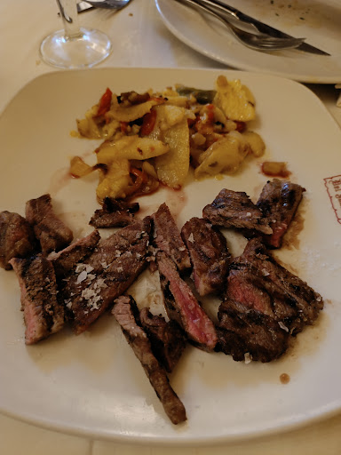 Se acerca a la mesa la chica rubia de la primera vez y nos pregunta si habíamos ordenado ensaladilla rusa, digo no, hemos ordenado carne y nos dice a si, es que soy dislexica.