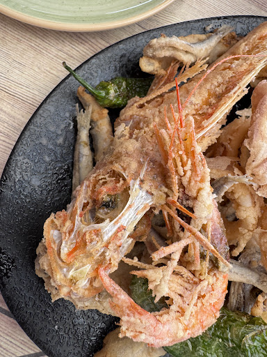 Fuimos a este bar de tapas a comer con mi pareja. A pesar de que casi todo estaba reservado, nos dieron mesa sin problema nada más llegar, lo cual fue un buen detalle. Con cada consumición ponen tapa, algo que se agradece y le da un toque guay. Sin embargo, queríamos picar algo más y preguntamos al camarero: nos recomendó una media ración de pescaito… pero no nos gustó nada. Eran trozos grandes de pescado entero, sin gracia y muy normalito.