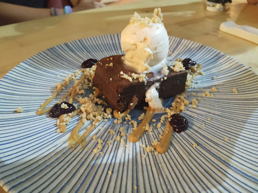 Read moreEs raro empezar la reseña hablando del postre, pero es que me enamoré de éste lugar por su brownie, que me parece el mejor que te puedes comer por Almería. Sobre la comida, tienen multitud de opciones para una cena muy apetitosa. Tienen tapas de cortesía, especiales y platos o raciones. Sin duda, destacaría, el bao de costilla con manzana y remolacha, el muffin de lomo y cheddar o el crujiente de secreto. Por otra parte, los pinchos y raciones están espectaculares, como el costillar, muy muy tierno, o los tacos al pastor, nuevo plato que me sorprendió muy gratamente. Las bravas están impresionantes, y el lomo al ajo, aún siendo un clásico, entra muy bien, y queda muy tierno con la receta que usan en este local. Sin duda, un sitio de obligada visita...
