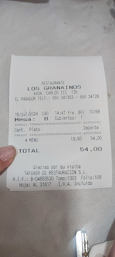 Read moreParada obligatoria para quiénes están de paso o están por Roquetas del Mar, restaurante Los Granainos transmite calidad con su menú y sus tapas,comida casera y bien elaborada por el cocinero de este restaurante,los camareros te hacen sentirse en casa 🏡 con el buen atendimiento y cordialidad.Realizado pedido del menú del día por un precio inmejorable por los días que corren, 1°2° bebida y postre,pedimos un bocata de hamburguesa muy bueno y en un tamaño considerable,pedimos de postre crema catalana elaborada por ellos que estaba riquísima.Tienen rampa de acceso para silla de ruedas y un amplio salón con opción de mesas en la terraza,justo delante hay mucho...