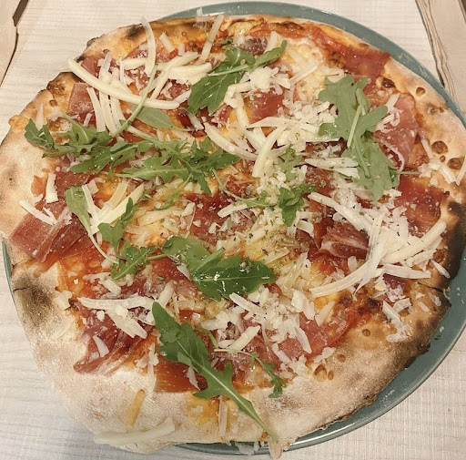 Pizza Ibérica(tomate natural, mozzarella, jamón ibérico, parmesano, rúcula y aceite de oliva)🔴 - 15’55€
