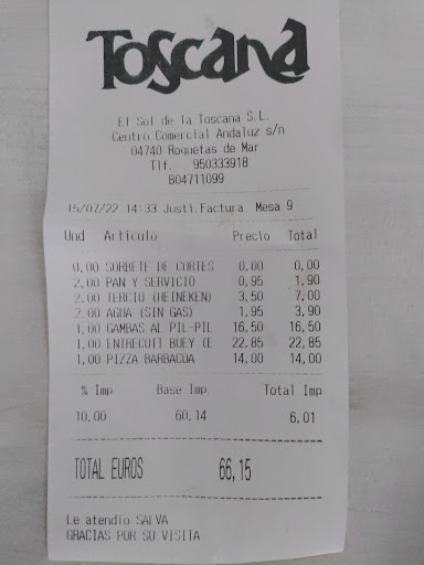 📍Restaurante Toscana, Roquetas de Mar(centro comercial andaluz s/n URBA, Roquetas de Mar, Almería)