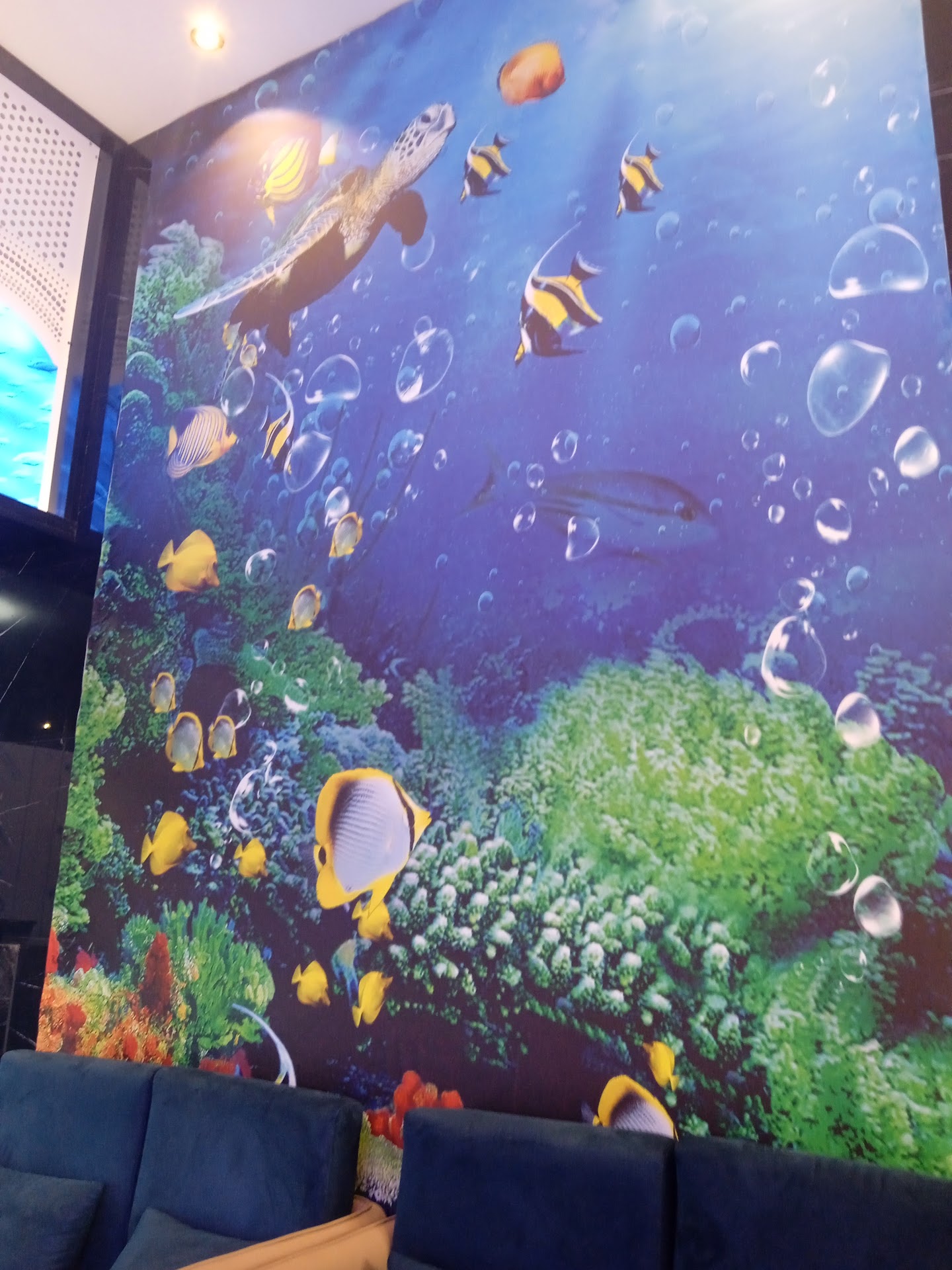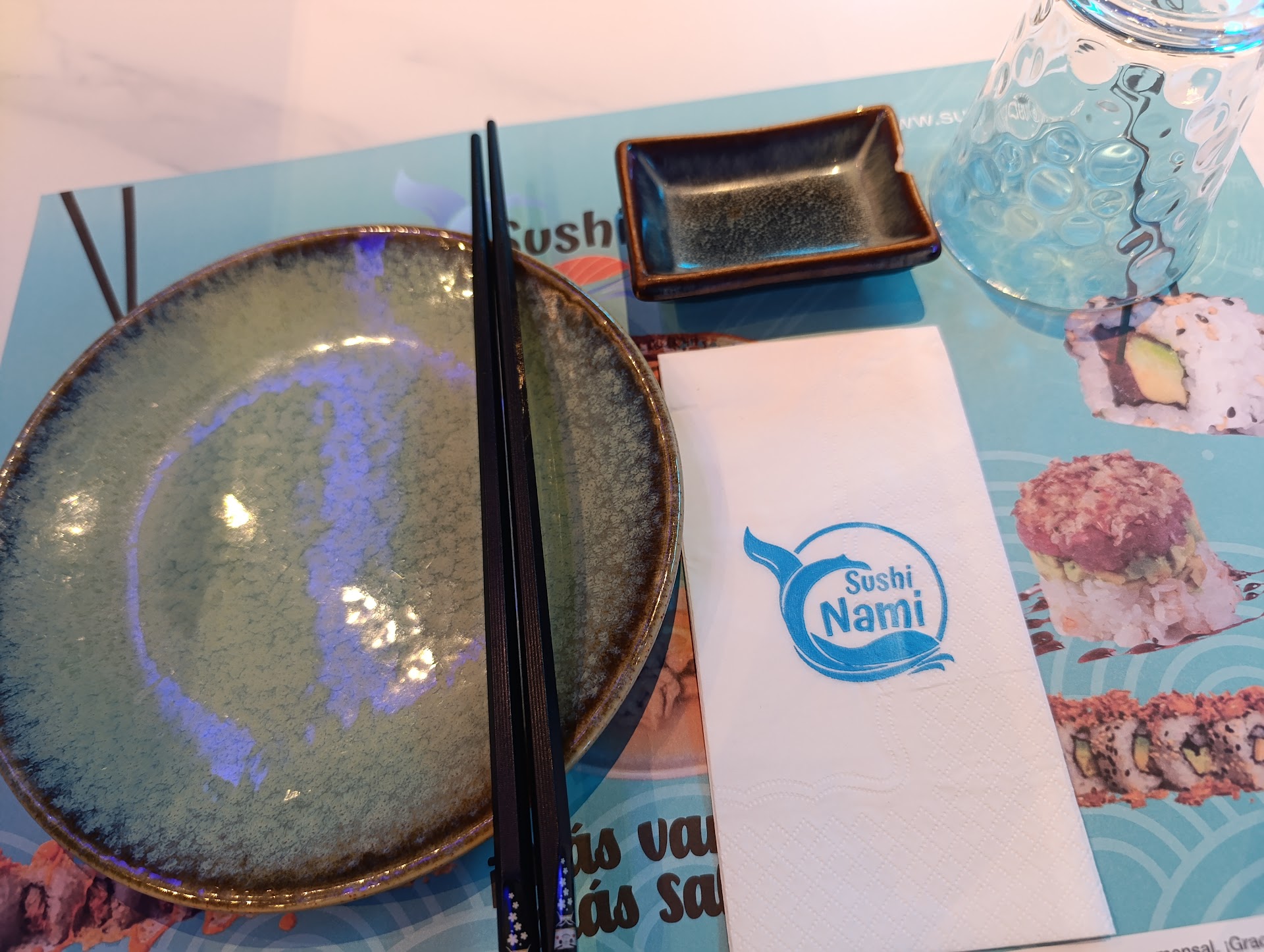 Read moreLe pongo 5 estrellas porque no puedo ponerle más 😍 Nos llamó la atención este nuevo local desde fuera pero por dentro es mucho mejor de lo que podía imaginar. La atención de los camareros es de 10. En especial la celebridad de éste restaurante, un robot que maulla y grita "miau, aquí estoy". Nos dejó fascinados. Aunque como comimos de menú son los camareros los que te traen la comida y no el robot. Por cierto, el menú diario de lunes a jueves 13'50€ tiene un precio buenísimo e incluye bebida y café o té. Por cada menú puedes pedir 4 platitos que si bien son pequeños tienes variedad para elegir y comes muy bien y además te incluye alguna degustación en lo que te traen el menú. Eso sí, no pidas pan que estás en un restaurante japonés. Cubiertos sí puedes pedir pero tienes que pedirlos porque solo te traen palillos chinos (o en Japón imagino que los llamarán japoneses jaja) La comida ya podéis ver en las fotos, entra mucho por la vista, y todo me sentó súper bien, muy saludable todo. La decoración del local es como si estuvieras en un acuario es hermoso éste local. Y los baños, no tienen éstos váteres japoneses que te limpian 'ahí' con un chorrillo de agua pero tiene una manguera para tal efecto jaja no la usé pero tal vez si vuelvo para mi cumpleaños eche mano de la manguera. Jaja ya...