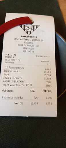 El bar Antonio et captiva des del primer moment, de presència senzilla i casolana tant exteriorment com interiorment. Màxima atenció des del primer moment per part d'un sensacional servei, sense pressions ni aclaparaments. Sensacional mil cops.