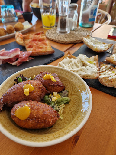 We ate with 8 persons, we made a reservation up front. The food was really fantastic! The breaded goat cheese croquettes are heavenly! The restaurant is very nicely located on the boulevard with sea view. Unfortunately the service was below the usual perfect standard; only two service staff. We were not in a hurry, but everything took extremely long. Also when a lot of customers are gone, staff likes to talk with remaining customers, or is very busy preparing for the next day and forgetting a table of 8 persons. This was really poor show!! An order of pan con tomate was forgotten. It took more than 15 minutes to get it served. Finally it appeared twice on the bill. I will be back. But service...