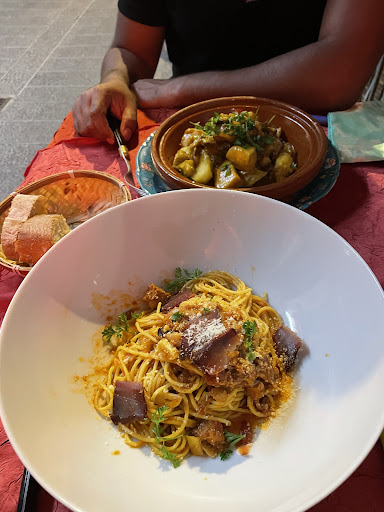 Read moreA fuir. Je mets une étoile car je ne peux pas mettre moins. Nous avions réservé pour 21h45. Nous sommes arrivés Nous n étions pas attendus mais on nous installe 2 adultes 2 enfants. Déjà pas de carte, pas de prix. Pour les enfants on Nous propose pâte bolognaise, génial on a pas trouvé la viande. Pour les adultes le grand truc a la mode on vous propose une assiette du chef, oui OK qui y a t il dedans ? c est la surprise. Bon... les petites sont vîtes servit Nous 22h45 l entrée, on ne sait pas se que l on mange. On aime pas trop, dont un truc que je n arrive pas à trouver ni à identifier. Je demande à la serveuse. Réponse ah ben je sais pas c est le chef qui choisit.... heu oui mais j aimerais savoir.... ah ben non.... Bon ne sachant quoi commander on fait simple on prend pâtes au thon.... les pâtes enfin arrivent même pattes que le menu enfants, même base tomate saupoudré de parmesan 2 bouts d artichauts et 4 petits bouts de thon. Arrive le moment du dessert, semoule aux fruits, salade de fruits ou riz au lait Bon ma fois après les pattes bien dur a passer. Pour les petites je demande ce qu ily à on me dit mousse au chocolat chantilly ok super. Le dessert arrive ce n est pas de la mousse au chocolat je demande à la serveuse, Ah.... non le chef fait comme il veut il a choisi ça c est autre chose😤😤 Bon... on goûte un espèce de pudding flottant sur un liquide lacté écrasé de chantilly..... bien trop sucré et pas fin du tout. Bref...il est temps de passer à la caisse, je vois mon mari ressortir déconfit, car payer n est pas un problème mais 90€ pour manger des pattes. C est vraiment mal passé. Alors surtout ne vous fiez pas à la ribambelle de plaques Petit futé TripAdvisor, le Routard et compagnie soit ils les vendent leurs plaques, soit les critiques culinaires on des séquelles du COVID, mais là c est prendre les gens pour des...