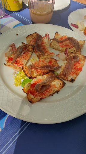 Vam ser 4 persones i vam demanar paella (amb all-i-oli que venia, curiós, com si fos fideuà), 1 tapa de calamars, 1 de pebrots del padró, braves, 5 cerveses, 1 aigua.