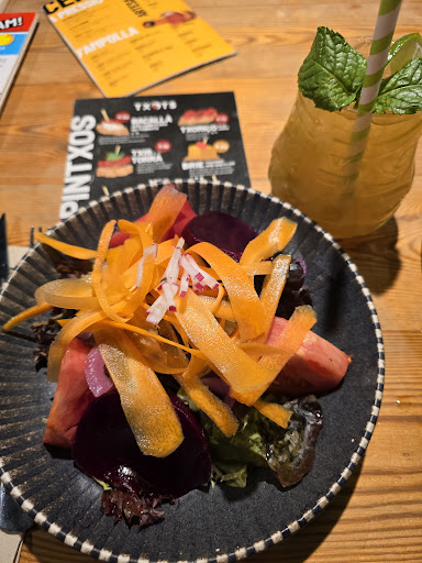Amazing. Simply amazing. Had a bocadillo (sandwich) which they customized to my pickiness, salad (HUGE for €5), sidra (I love ciders), and dessert (see pictures). Amazing time. Had Tartar (tuna) and it reminded me of Poké from Hawaii—fresh fish and delicious/beautiful garnishes. The initial look of the place (modern, hipster) might turn you off on your European getaway, but definitely come for the friendly staff and amazing food/drink. Can’t recommend highly enough. Went to Las III CARAVELAS last night because of reviews, but we wish we were eating here breakfast/lunch/dinner. Had to write this review because of the time we had. We’re from DC/LA. Prices were unbeatable as well. Take some...