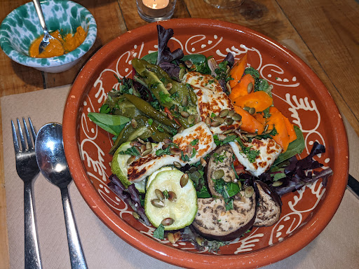 Read moreFuimos a cenar dos matrimonios y una niña, en el mes de agosto , previa reserva, bueno el lugar es acogedor , música tranquila y de volumen bajo ideal para conversar, cenamos dentro y nada más entrar notamos un calor que me sorprendió para ser las nueve y media de la noche, quizás deberian utilizar aire acondicionado en lugar de ventilador, supongo que será por su política ecológica, bueno pedimos varias ensaladas de primero, y mientras lo preparaban trajeron la bebida, y sucedió el primer fallo de la noche: las cervezas de barril estaban un pelin muertas sin espuma, bueno corrigieron luego en el precio que no las cobraron cuando la camarera muy agradable y simpática nos confesó que eran las últimas del barril, creo que no las deberían haber servido pero bueno no pasa nada, nos traen las ensaladas y acontece el segundo fallo de la noche, entre las espinacas emergió una hormiga corriendo a toda velocidad, bueno esto no tiene que ver con lo ecológica que pueda ser la verdura, esto es que te has precipitado para servirla sin haberla lavado , porque es lo minimo que se puede hacer darle un agua y escurrir, creo que para una ensalada de elevado precio es un fallo grave, bueno, en cuanto a la combinación de los ingredientes de la ensalada: sinceramente algunos no combinaban bien, a veces no por echarle muchas cosas está mejor hay que buscar una armonía, incluso habia un ingrediente que me pareció anis que distorsionaba todo el sabor para mi gusto, después nos trajeron la pasta, y ahí si que remontaron ,en su punto, buenas texturas y un sabor excelente, las salsas exquisitas, y por último los postres: bueno me pasó un poco igual que con las ensaladas, algunos sabores un poco extraños, pero esto ya es mi opinión personal, en gustos no hay nada escrito, al resto de comensales les encantó los postres. Total : en lineas generales les doy un 6 sobre 10, el precio me pareció elevado, pasé calor, la combinación de ingredientes no me gustó, y los fallos de la hormiga y la cerveza son perdonables pero restan en mi nota, quizás no estuvieron acertados, pero si es destacable su intención de corregir, y fueron muy...