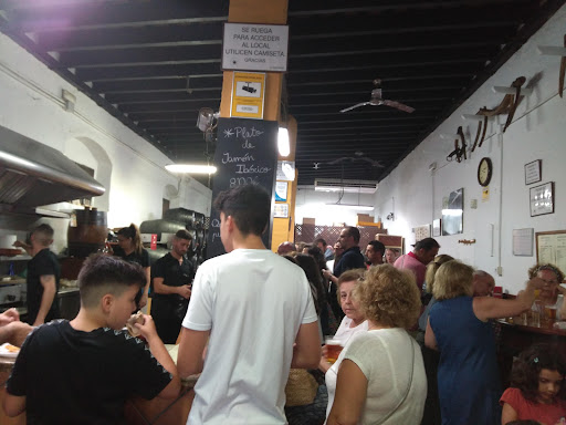 Must visit for tourists. A authentical Andulucian bar/bodega owned by a sherry maker. Behind the bar are about 12 barrils with different kind of sherries from the winery. Vary from super dry (Oloroso seco/Manzanilla) to very sweet (Moscatel pasa..nice!!). The idea is to try them (all 😉) accompanied with tapas. Full with locals. It's fun to do a sherry tasting. A glasses are small, just 50cl, and costs €0,45 each. Order you tapas and drinks at the bar and if the tapas are ready the call your name. Tapas are served on a plastic plate and vary from €1 (butifarra/ cold cooked sausage) to €3,80 (6 large gambas). The also have the usual suspects; ensaladilla (€1,50), pinchos de pollo/ chicken skewer with slice of french bread) etc. Food is ok but if you go just for the Tapas there are...