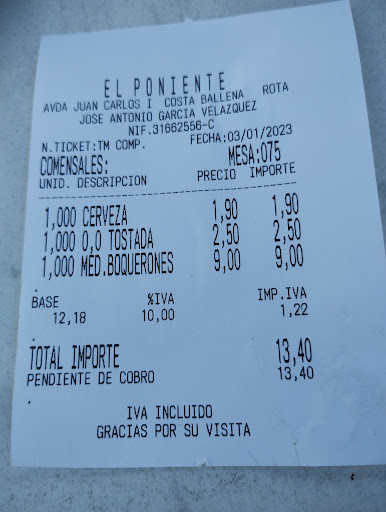 Read moreA place that has all possible advantages with its location and food but is ruined by the service. We visited a few times during our stay in Rota & Costa Ballena, but never again! Just for a waiter to come and take our order, we had to wait 20-30 mins. No, not because the place was full, about 3-4 people who had arrived after us were served in that period. Now, even after all of this, all the waiter could tell us was “¿Nada para comer, solo wifi?” in a completely antipathic tone....