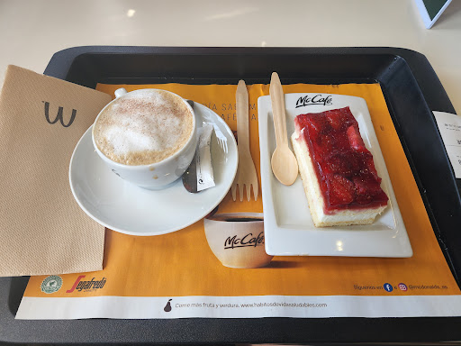 Visited this morning for breakfast. Friendly and helpful service. Two people were busy diligently cleaning outside areas despite inclement weather. Toilet absolutely spotlessly clean too. They have leche sin lactosa available if you ask for it. My only irritation - and I'm not marking down because this seems to be a change across all the Spanish branches - but no crockery for hot drinks just paper cups. I don't think this does anything to improve sustainability and MacDs should reconsider their environmental impact. It is a shame because their coffee is...