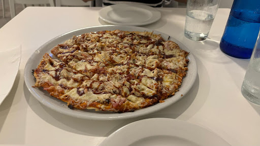 The pizza was just okay, the pepperonis tasted very low quality, the only redeeming quality was the decent crust. The mozzarella sticks came out after we were half way through eating our pizza and they looked and tasted as though they had been left in the oven as long as we had been eating (they were burnt and tasted only a little okay dipped in ketchup). The fries with chipotle, chicken and cheese were pretty okay, probably the only somewhat good thing we tried. Seating available outside was nice even with the street noise. Probably will not return as the food was as many other reviews say “average Spanish food”. Wouldn’t really say anything was overly greasy or that horrible, just...