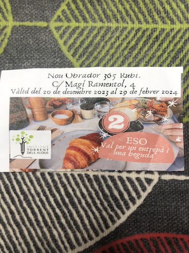 Read moreSiempre solemos venir aquí por las ofertas. Pero en este de rubí te hablan como si te debieran un favor y además mienten. Les pides la oferta de café y croissant y te dicen que les ha fallado la fermentadora y solo tienen los del escaparate, que son bastante más pequeños y además te lo cobran al mismo precio.