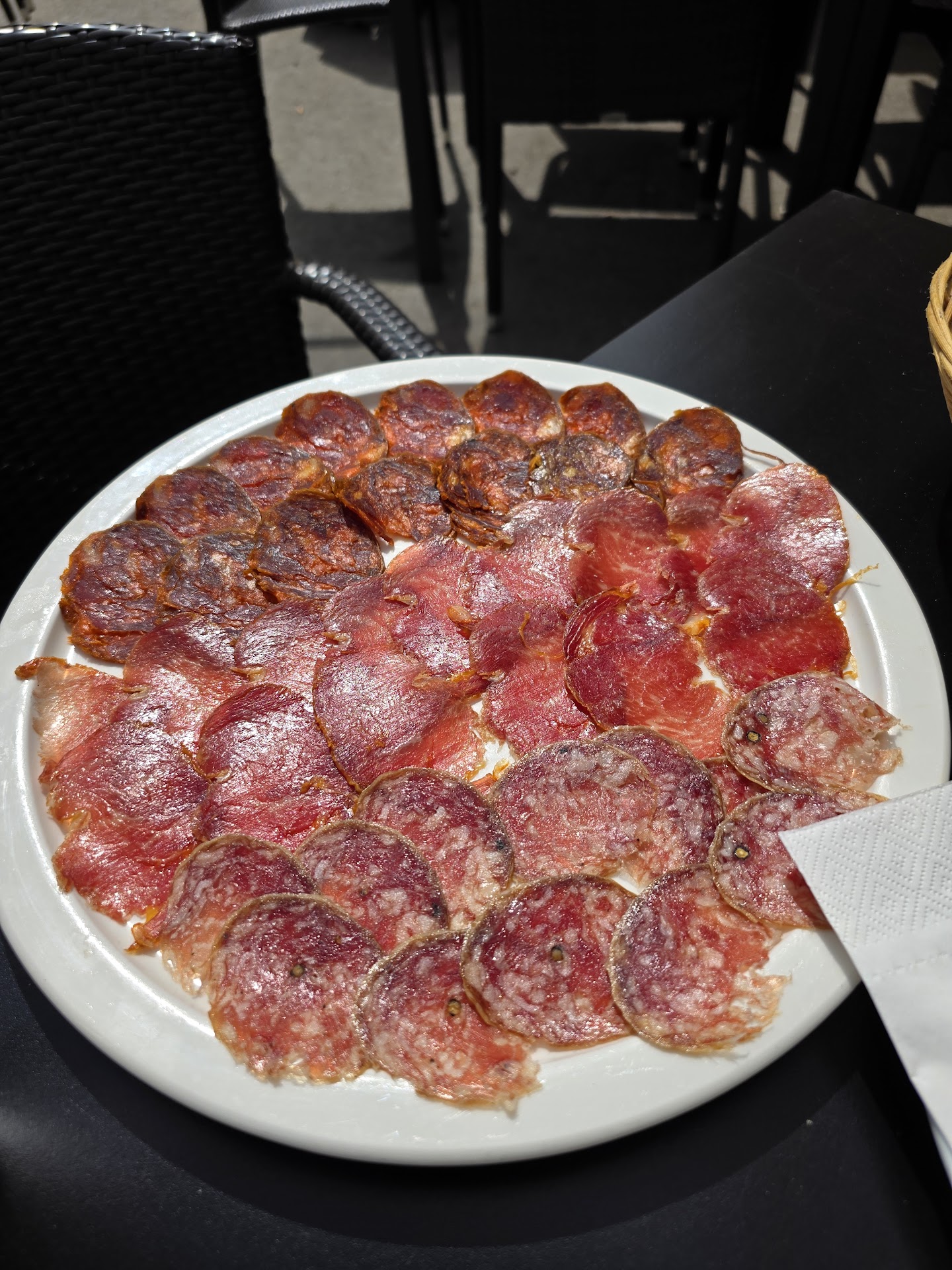 Read moreDebido a un pequeño incidente en el viaje paramos a comer en este bar muy tarde; prácticamente a las 18:00. Aun así los dos camareros que había en el bar nos atendieron muy amablemente y nos ofrecieron las variadas tapas que tenían en el mostrador. Toda la comida se notaba casera y bien preparada. Los quesos, albondigas, chistorras, etc... estaban muy bien y nos sentaron de maravilla. Mención aparte tiene el carajillo que prepara uno de los trabajadores del bar que tiene una mano tremenda haciéndolos. Antes de escribir esta opinión he leido bastantes comentarios despectivos acerca del personal de este local; así que o ha cambiado dicho personal, o no entiendo nada porque tanto a mi como a mis compañeros se nos ha tratado de manera exquisita. No se nos ha puesto ningún tipo de problema en pagar con tarjeta (aunque finalmente no ha sido necesario) y el ticket estaba perfectamente detallado. Así que por mi parte pienso repetir cada vez que pase por...