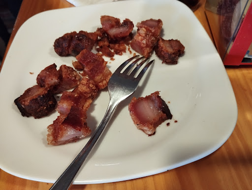 Reseña exclusiva del restaurante. ***/***** 📍 Calle Santisimo Cristo, 134 Salida 170 A-6, 47490 Rueda España 📸 Algunas fotos de productos. 🕙 Fuimos a comer de paso 4 personas en Diciembre. 🧾 Pedimos: (detalle de precios en el ticket). El total fueron 33€ Bebidas: 2 Coca Cola Zero (5€) Botella de las grandes 1 Agua 1,5l (2,50) Comida Hamburguesa de lechazo (8€) No nos gustó mucho. De lo que pedimos lo que menos recomendaría. Tamaño adecuado y con patatas de acompañamiento. Ración de torrezno ibérico (5€) Ración estándar. Torrezno bien hecho y crujiente. Bocadillo lomo con pimientos (6,50€) Correcto. Buen tamaño Bocadillo bacon con queso (6€) Correcto. Buen tamaño 👩‍🍳El servicio estaba algo desbordado debido a que había muchísima gente en el local. Se confundieron con alguna comanda aunque finalmente trajeron todo a la mesa y no tardaron mucho. 🌁 El local es un local mediano. Tiene una terraza exterior algo frío, un comedor dentro y unas mesas cerca de la barra para comer. También cuenta con una tienda principalmente con embutidos y helados. 📈 Buena relación calidad precio y atención adecuada pese a la cantidad de gente que había. 📉 Productos locales limitados, tienda con productos escasos. Aunque la comida puede se mejor, la cantidad es en general abundante.