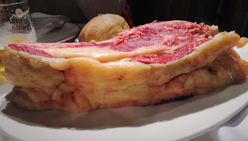 Nos sentamos y nos dan la carta, después de tener que consultar en cocina una cosilla, nos anotan. Durante la espera escuchamos que ofrecen menú del día en otra mesa y una tercera mesa pregunta por qué a ellos no les han ofrecido menú, escuchamos vagamente algo de que han terminado las fiestas y no sé qué. No quedan contentos y cuando les sirven el primer plato preguntan lo mismo a un segundo camarero el cual les atiende mejor y les da la opción de menú. Nosotros ya habíamos comido nuestro primer plato, ya no era de agrado cambiar. Aún así, volviendo a nosotros, la ensalada floret estándar con doble ración de pasas y el medallon de queso solo pasado por la plancha por un lado, no estaba mal. Los segundos llegan sin recoger/cambiar cubertería/platos. Además, el solomillo al queso llega sin queso teniendo que pedirlo y convirtiéndolo en solomillo con queso. Las chuletillas exquisitas 😊