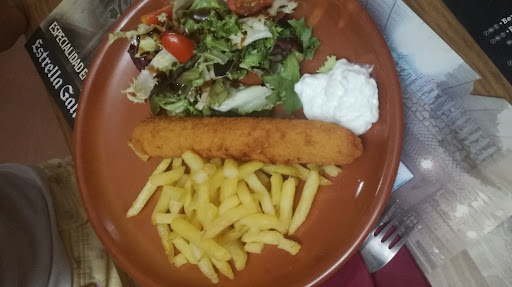 SP and EN El servicio prestado ha sido muy bueno pero la comida de bien llegó a ser pésima. En un principio pedimos una ensalada que estaba bastante buena y bien condimentada, poco después pedimos las croquetas de bacalao con gambas que también estaban muy buenas, pero la cosa fue tornando hacia mal en cuanto trajeron el filete de pollo empanada que de filete era una fina loncha casi inapreciable y el flamenquín estaba muy duro y el empanado se caía. Así pues, esa ha sido mi conclusión, buen personal pero a la comida no le doy ni una segunda oportunidad. No sé el porqué de esa fama... Porque barato no me resultó.