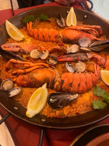 We went here because of the great reviews and were really disappointed. We had the lobster paella, cod fish, grilled squid and a salad. The paella was not properly cooked, such that the rice grains were still raw (you can see it in the pictures - it didn’t soak up the juices and the paella is watery). We pointed it out and the waiter responded nicely and took it back to the kitchen to cook it for longer. When it came back the rice was still slightly undercooked, but now the lobster and seafood on top were completely overcooked and dry unfortunately. Putting the texture aside the taste itself was watery and not rich in seafood flavor. The grilled squid had a nice charcoal flavor but didn’t taste fresh and was slightly undercooked. The cod fish was ok though had so much toppings, the fish didn’t shine through. The staff seemed nice though we didn’t got the table side serving service for the paella in comparison to the other tables, which was weird in hindsight.