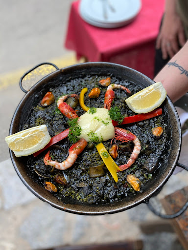 We ate on a weekday evening in November. We shared a tapas platter between three of us which was generous and the best we found during our holiday. One diner then ate confit duck with baked vegetables which was tasty and rich. The other two shared a mixed paella which was so generous that it defeated us and we had to leave some uneaten. Again, the paella was the best we ate on our holiday. We spent under €100 for the three of us which didn't include much alcohol (just one glass of wine and a couple of soft drinks). The room is interesting with old tools on display. Otherwise, the atmosphere was a little flat. We did eat quite early and...