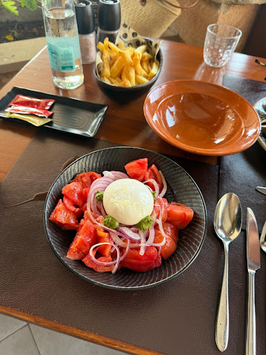 I wanted fish, but the menu had very few options, and the fish dishes were too big for one person (mainly for 2–3 people). The menu itself was quite small with not much variety. So instead, I ordered the tomato and buffalo mozzarella salad and homemade fries — both were fresh and very good.