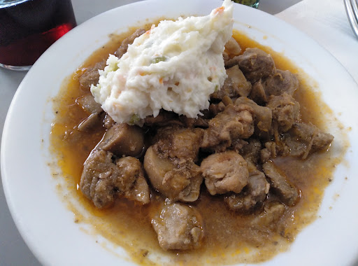 Fuimos a desayunar y ese dia justamente estaba a tope, ya que por lo visto habian cerrado bastantes locales de la zona y estabamos buscando uno abierto y probamos suerte en este porque no vimos otro. La primera impresion es que parece que habia pasado un batallon de combate, la barra estaba llena de platos y vasos y igual que las pocas mesas que quedaban libres asi que la camarera que nos atendio nos dijo que esperabamos mientras limpiaba una, cosa que hizo pasados 5 minutos. El caso es que una vez nos sentamos esperamos otros 5 minutos para poder pedir, no culpo a la camarera porque por lo visto estaba ella sola y tenia mucha faena. A la hora de pedir, por desgracia no quedaba frito o algun tipico plato que nos apeteciera. Asi que pedimos lo que quedaba lo unico que quedaba si no queriamos pan amb oli o algun bocadillo, champiñones con carne, . El plato era escueto y no estaba especialmente exquisito comparado con otros sitios donde he estado por la zona, aunque la carne es verdad que estaba tierna y rica habia demasiada grasa a mi gusto y la salsa le faltaba gracia, estaba muy aguada. Entiendo que tendran platos mejores y por eso la gente no pide este plato y lo dejan para los rezagados como nosotros pero me falto algo mas a pesar de los pesares. El trato fue bueno (estando una persona sola ya es algo), el precio quizas un poco alto para lo que comimos. Espero volver y probar un buen frito o algo por el estilo para cambiar mi opinion. Ya que creo que fui en un mal dia y quizas...