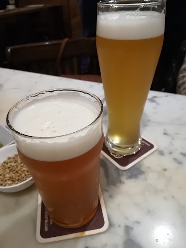 Probé dos cervezas: La Hefe-Weissbier con notas de plátano y clavo, me pareció muy agradable al paladar, suave e ideal para tomar con amigos. La Extra Special Bitter con estilo inglés y algo amarga, pero cuanto más la bebías más te gustaba. Genial.