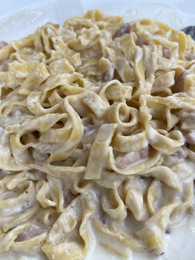 Actualización Agosto 2023 (1): hace unos días volví y prové la pasta carbonara. ¡Deliciosa! Y una buena ración. Quedé muy lleno y quise llevarme el postre pero no pudieron ofrecerme un tupper para poder llevármelo, ya que los guardan en un sitio con riesgo de contaminación por harina.
