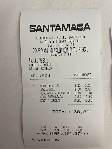 Read moreEl sábado pasado fui a comer a este local. Pedimos unas patata con butifarra (un clásico de Santamasa) y una hamburguesa ibérica. Después hicimos postres y café. Lamentablemente el cortado venia con un souvenir que no había pedido, una CUCARACHA y no precisamente pequeña. De hecho puedo confirmar que no era pequeña porque me la tuve que sacar de la boca y escupirla en el plato. Por suerte (no todo va a ser malo) tienen varios baños y llegué a tiempo para vomitar toda la comida de ese día y del anterior. El camarero que nos atendió durante la comida (por cierto, muy bien) estaba muy angustiado por la situación. Pedí por el encargado pero no estaba o eso me comentaron. El otro camarero con gafas de pasta negras, que parecia tener algo de responsabilidad en el local, me atendió durante 10 segundo mientras sostenia platos en la manos y me dijo “lo siento, no sé como ha pasado pero no puedo hacer nada”. Esperaba que me pidieran el teléfono para que me llamara alguien para pedirme disculpas de forma decente pero lamentablemente parece que les importó bien poco. Esta semana tomaré las...