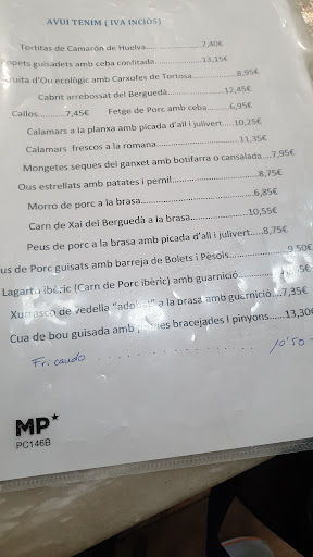 Read moreBueno, quizás haya sido un mal día o yo sea muy exigente, 17,75 € por menú no es barato. La fideua la han traído fría para 3 comensales. Se han llevado los 3 platos que tenían alioli, los han calentado en microondas, el alioli en costra, claro, y mi plato se lo han puesto a mi tía.... El pan seco por un lado, cortado desde la mañana.... y en el cesto algo de comida que no era nuestra, mejor no haber salido hoy o no haber comido..... Siento poner reseñas así, pero me ha frustrado la solución que han dado, no me meto en la calidad en profundidad, que es muy justa.