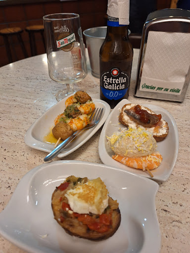 Not easy to find, but saw a board on the street with the name. Once inside the waitress spoke English and served me 4 tapas and a beer without alcohol, all for 8€50. Toilets are upstairs. There are tables outside. I enjoyed and will definitely go back when passing...