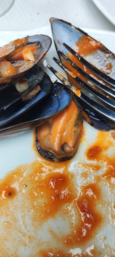 Cuando estamos esperando los mejillones... Nos llegan las chuletillas. Las cuales frenamos y reclamamos los mejillones. Llegan los mejillones crudos! Eran con salsa. Bueno... Jajjaa estaban crudos. Dejamos la mitad.