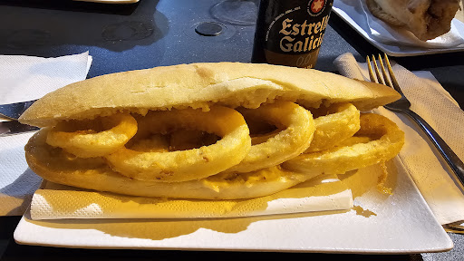 Read moreMe he guiado por las reseñas que he visto, y me ha defraudado totalmente, yo pensaba que iba a un restaurante y me he encontrado el típico bar de barrio en el que se encuentra la gente tomando cervezas y dando gritos, o sea nada recomendable para comer al mediodía. Empezando por el primer plato una paella supuestamente de marisco con un arroz insípido duro que por lo menos llevaba hecho dos días. La parrillada de carne que ponía en el menú era un trozo de chistorra un trozo de chorizo de barbacoa medio trozo de lomo y unas patatas fritas. En el pan se apreciaban como correteaban las hormigas. Lo único un poco decente los postres del menú que había variedad y estaban buenos. O sea nada recomendable el menú diario quizás los bocadillos sean otra cosa. Lo barato...