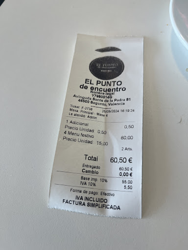 Y para postre nos hemos sentido Estafados! Os cuento, hoy Sábado 25/5/24 llamamos para reservar y nos dicen que tienen un menú del día a 12€, llegamos y vemos en la pizarra de fuera 12€ y en la carta 12€, bueno bien cuando pedimos la cuenta vemos que nos cobran por el menú 15€ y se excusa la camarera, que por cierto una antipática que hoy ellos lo consideran festivo, le preguntamos que porque, por teléfono, en pizarra y carta marcan 12€ y con toda su cara nos dice que como llevan poco tiempo para atraer a nuevos clientes, en fin hay una ley que es la de publicidad engañosa, pero bueno si al menos se comiera bien… Ahora entendemos porque el restaurante estaba vacío…Comida congelada y encima te sientes engañado… Nunca más y esto es de hoja de...