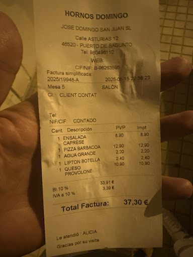 Read morePedimos una ensalada caprese, una pizza bbq y un queso provolone, el cual venía lleno de aceite hasta arriba( muy en exceso) y tenía un sabor malísimo. Nos quejamos y vino un chico que está en la cocina a explicarnos que es que el provolone es así, ( aceite, un poco de queso y muy dulce) aparte del pan que pusieron para el queso que era digno de probar( como una piedra) lo devolvimos entero y e igualmente lo cobraron, ni nos dieron la opción de ponernos otro. Atención pésima por parte de un chico alto que está en la cocina. Hemos venido varios años seguidos y nunca hemos tenido ese tipo...