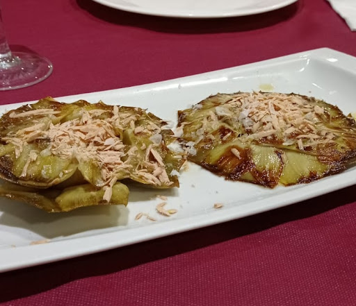 Además del plato principal, también disfrutamos de una alcachofa con foie y trufa que resultó ser una combinación sorprendentemente deliciosa. Aunque no estaba en la carta, el camarero nos recomendó unos boquerones en vinagre que resultaron ser un descubrimiento culinario. La decisión de seguir su consejo fue acertada, ya que estos boquerones estaban frescos y deliciosamente marinados.